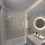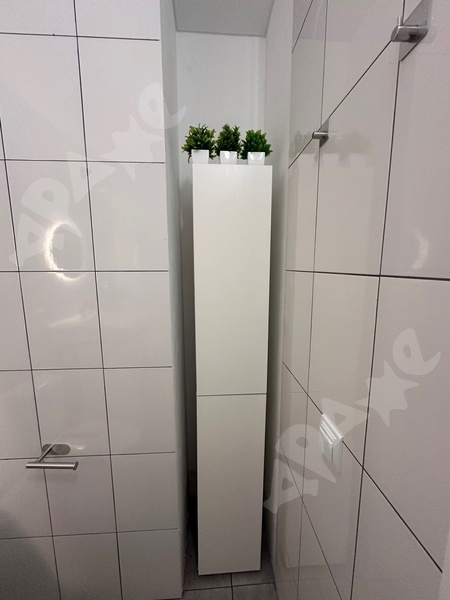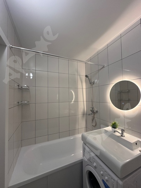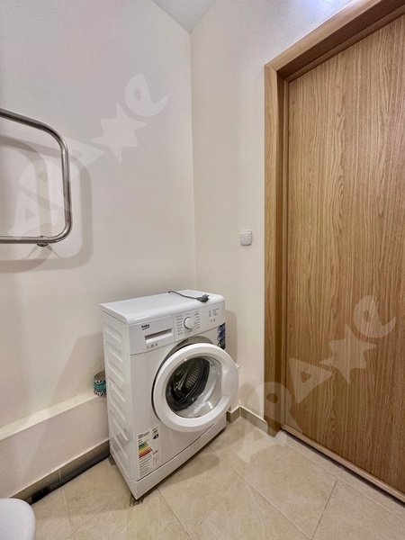Санузел полностью отделан плиткой, есть полноценная ванная, шкаф-пенал для хранения косметики и полотенец, зеркало с подсветкой, новая стиральная машина.
