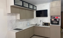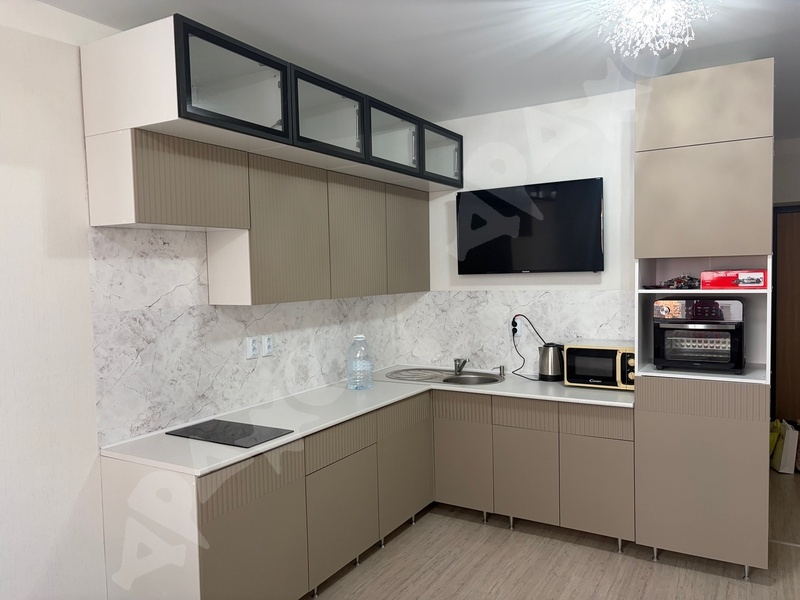 · Большая кухня со всей необходимой техникой (холодильник, варочная поверхность, чайник, духовка, микроволновка).