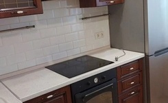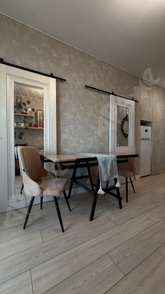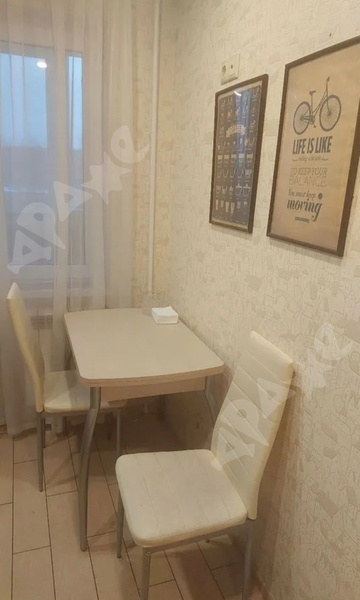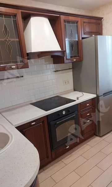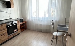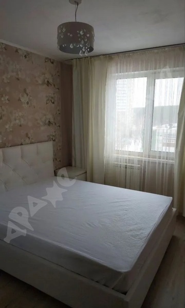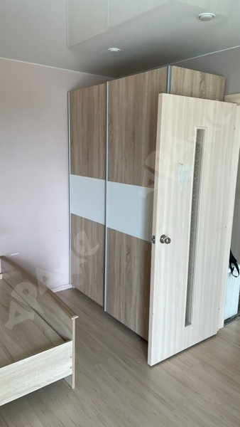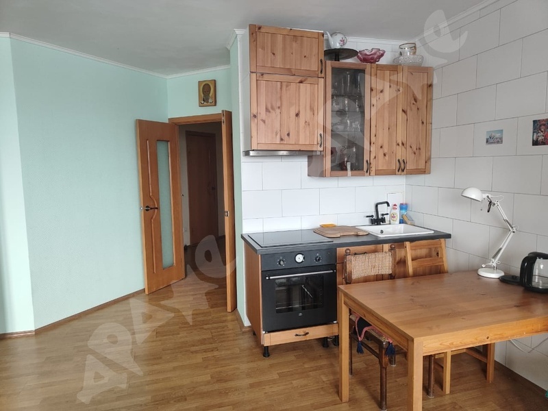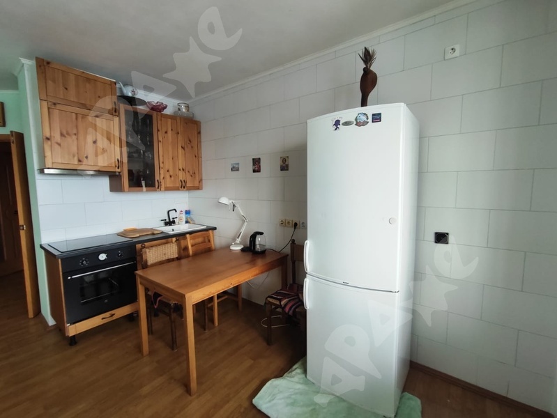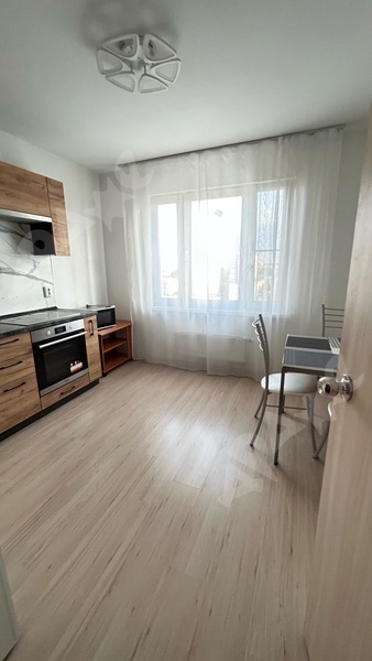 Квартира на 9-м этаже. Из мебели кухонный гарнитур со встроенной техникой, духовой шкаф, варочная поверхность, и вытяжку. Шкаф купе, кровать с матрасом, стол и стулья 3 штуки. Комод. Стиральная машина.