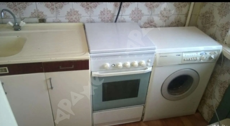 Мебель, холодильник, стиральная машина автомат, плита.
