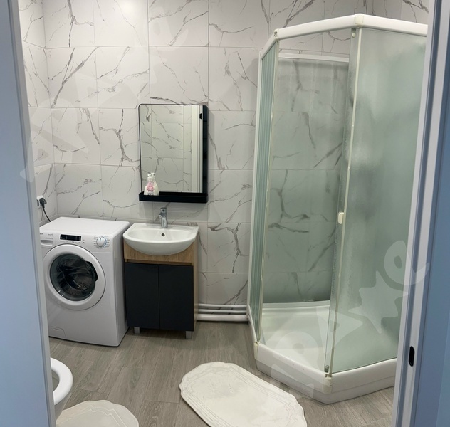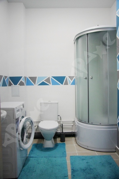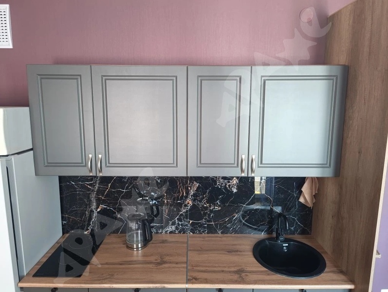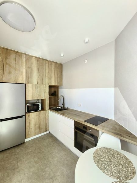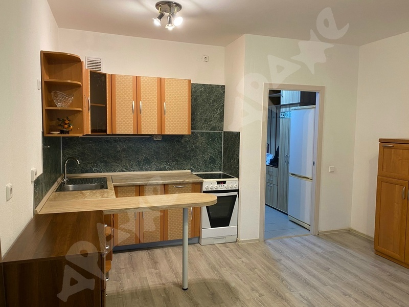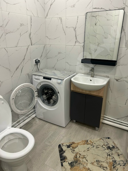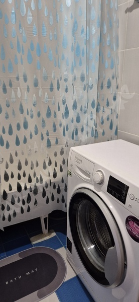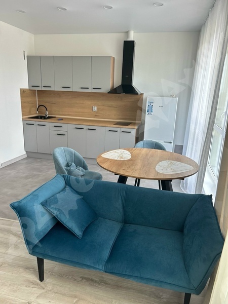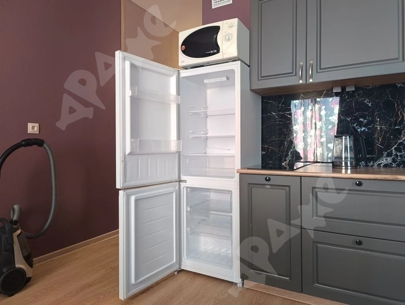 Мебель новая: раскладной диван (удобный!), обеденная группа, кухня с варочной панелью, холодильник, стиралка и огромный шкаф.