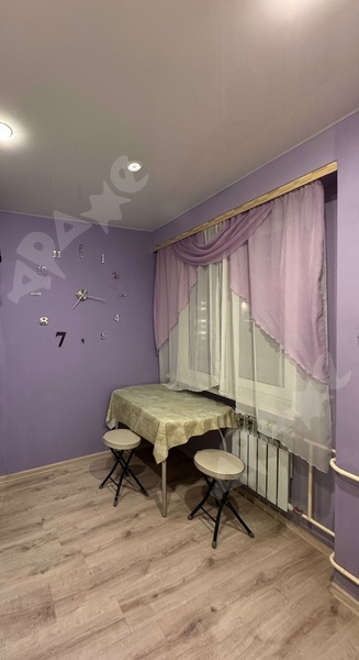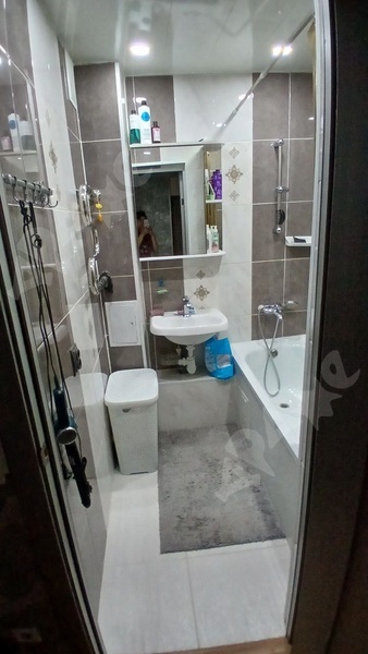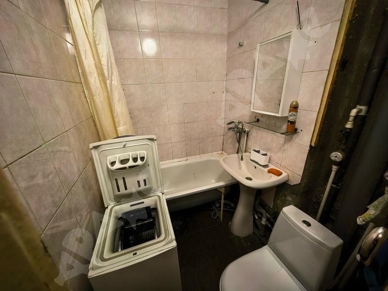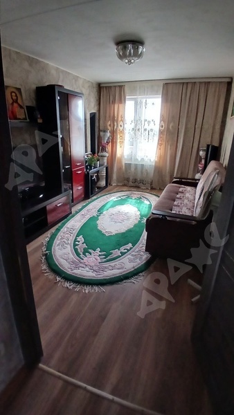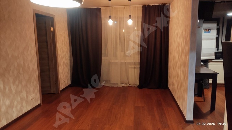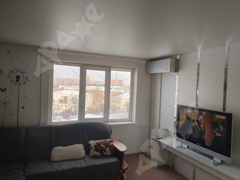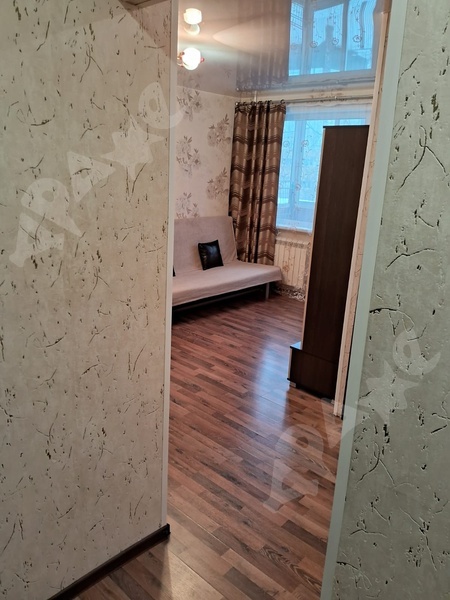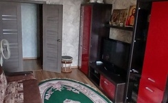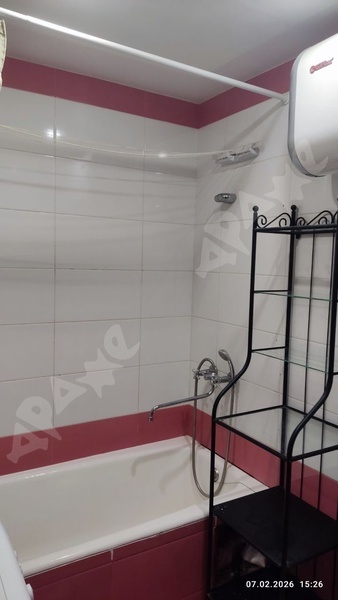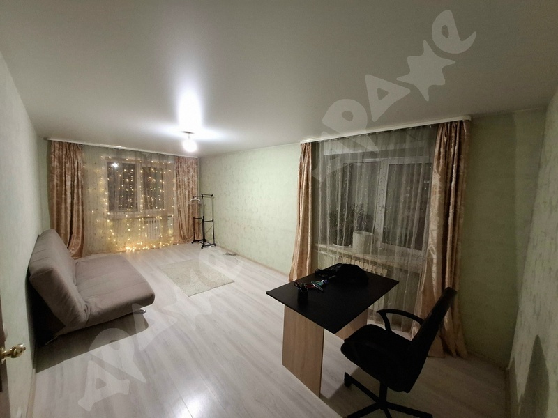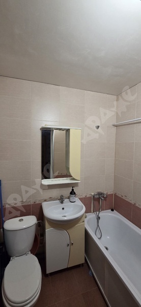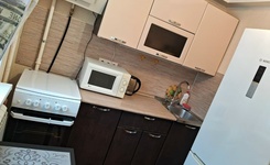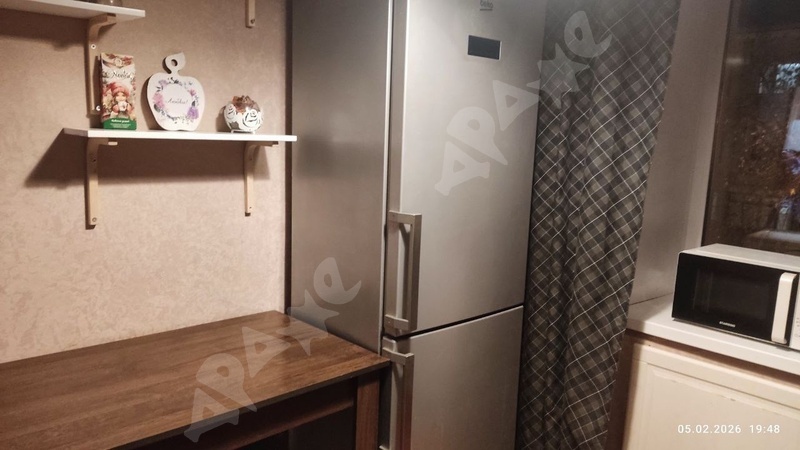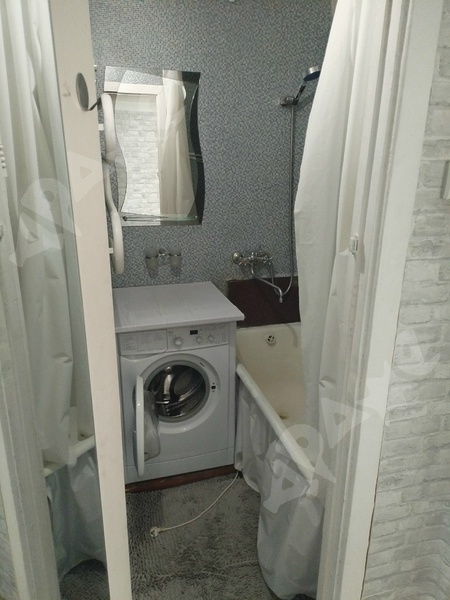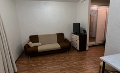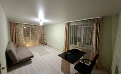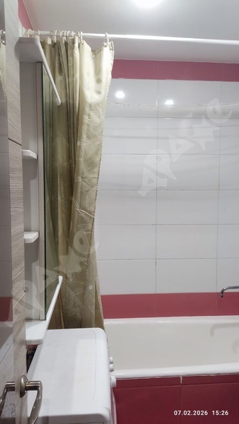 Квартира на 2-м этаже в 5-этажном доме. Комната просторная, есть лоджия, большой шкаф, большая кровать, натяжной потолок. Из техники есть газовая плита, стиральная машинка, микроволновка, чайник. Санузел смежный.