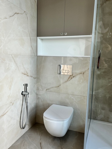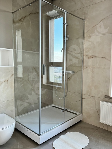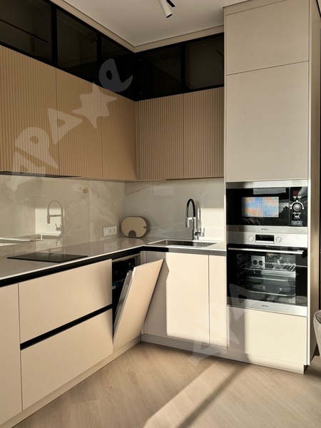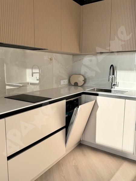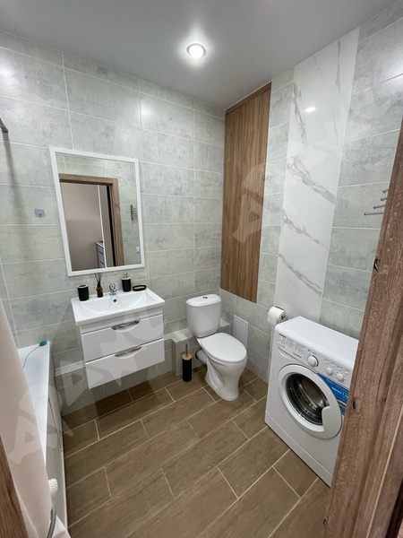 Квартира светлая, теплая. В кухне большой холодильник, микроволновка, посудомоечная машина, индукционная плита, чайник. В ванной стиральная машина, душевая кабина.