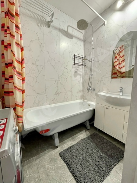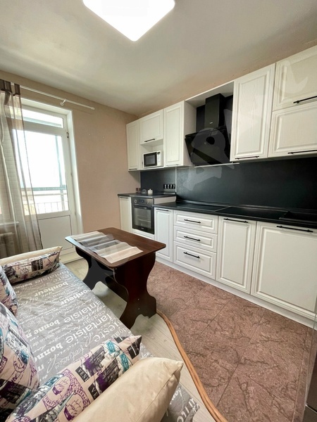 2021 года постройки, на 5 этаже с большой лоджией, на длительный срок, 1-2 человек, все необходимое для проживания, диван, мини кухня, большой холодильник (на фото отсутствует) стир. машинка, шкаф. Удобное расположение, транспортная развязка, охрана дома, закрытый двор и детская площадка.