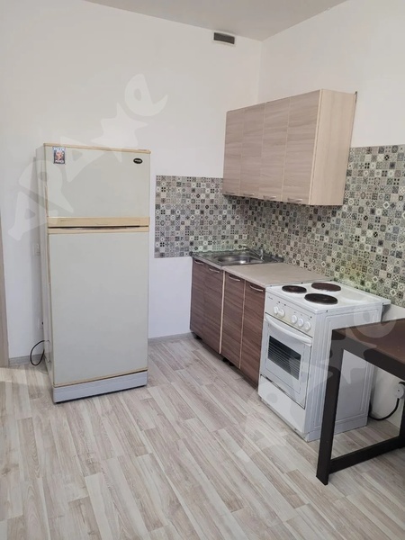 В квартире имеется мебель - кухонный гарнитур, вытяжка, стол, стулья;