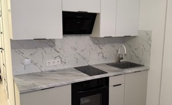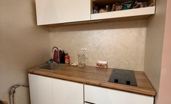 Имеется вся необходимая мебель и техника для комфортного проживания: кухонный гарнитур, варочная поверхность, микроволновка, чайник, телевизор (установим новый в выходные), стиральная машина, диван, шкаф для хранения.