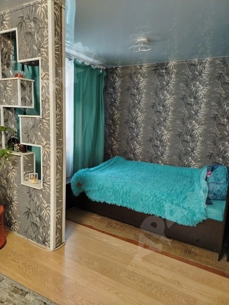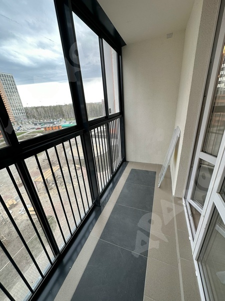 Комната и кухня изолированы. Большая лоджия вдоль кухни и комнаты. Окна выходят во двор, в квартире тихо.