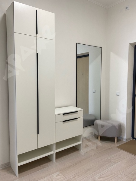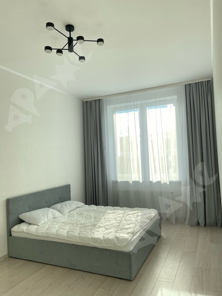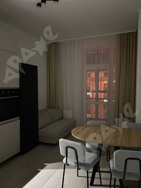 Квартира на 24- м этаже с панорамным видом, квартира оборудована отдельной гардеробной комнатой, кухня с посудомойкой, большой холодильник, микроволновка, чайник, кровать с подъемным механизмом для хранения вещей, шкаф, комод.