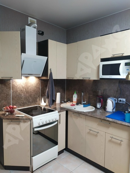 Полностью укомплектована техникой: стиральная машина, духовой шкаф, холодильник.