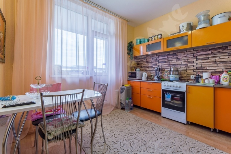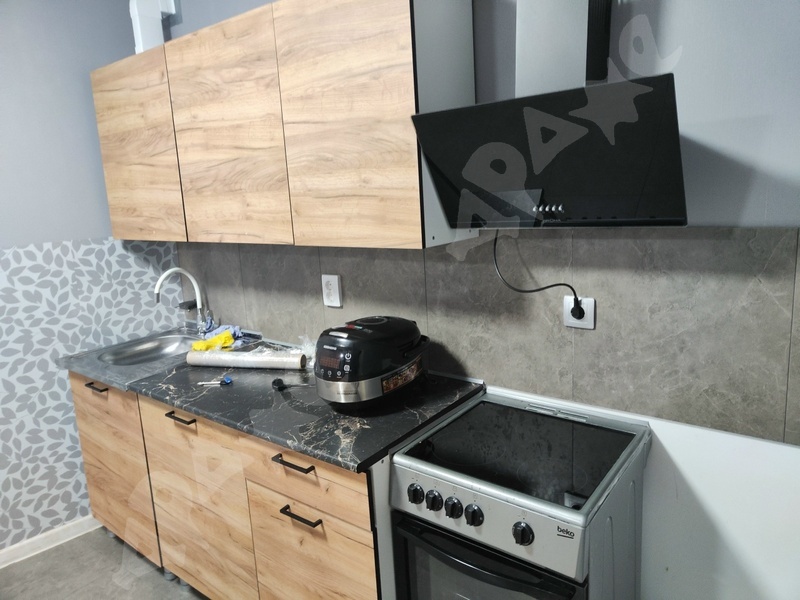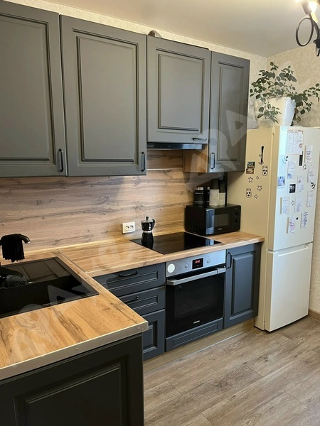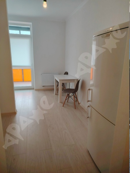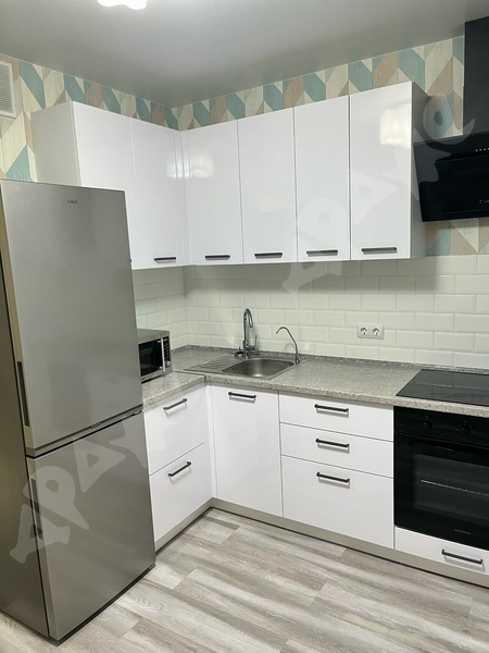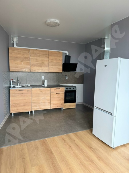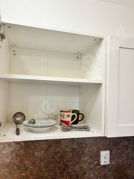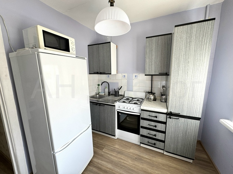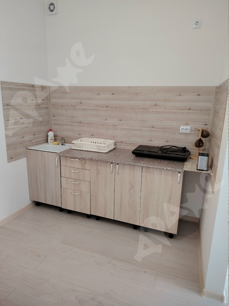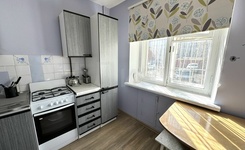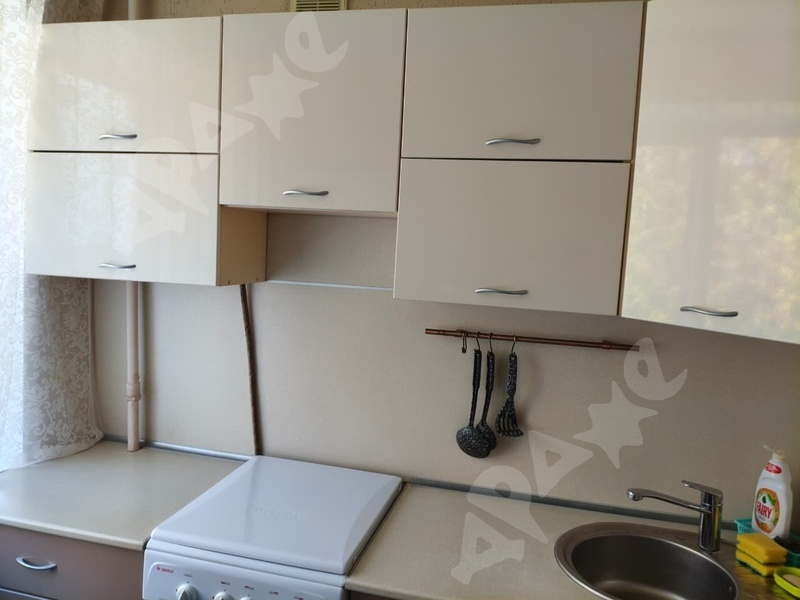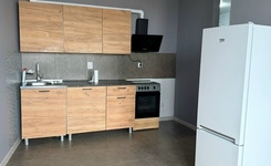 Новая кухня (не модульная), новая варочная поверхность и духовой шкаф. Стол и стулья, стеллаж. Холодильник и стиральная машина. В коридоре есть удобный шкаф - купе. Залог за последний месяц ( можно разделить на 2 части).