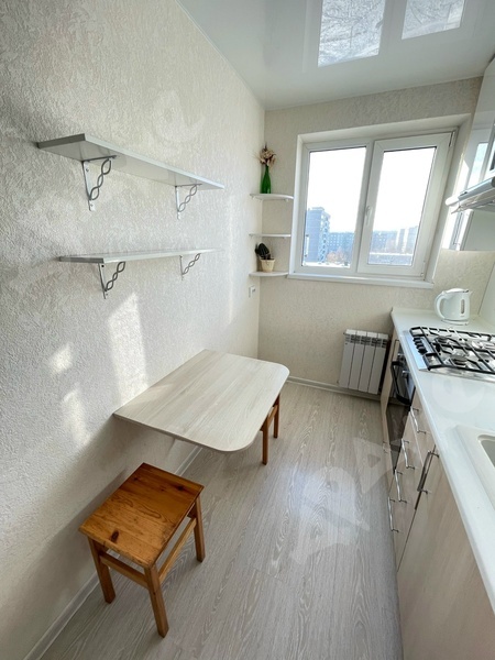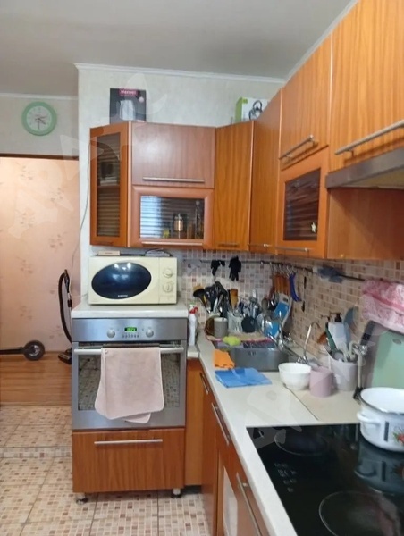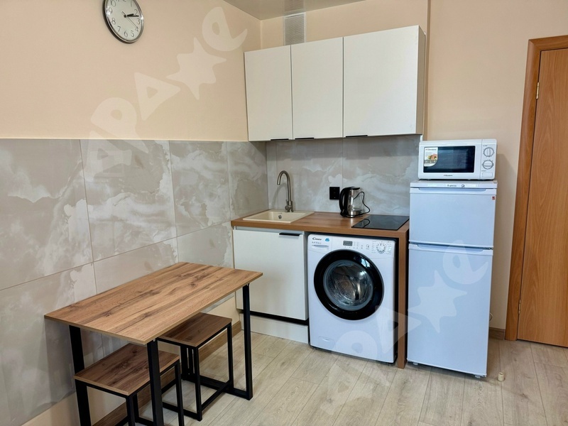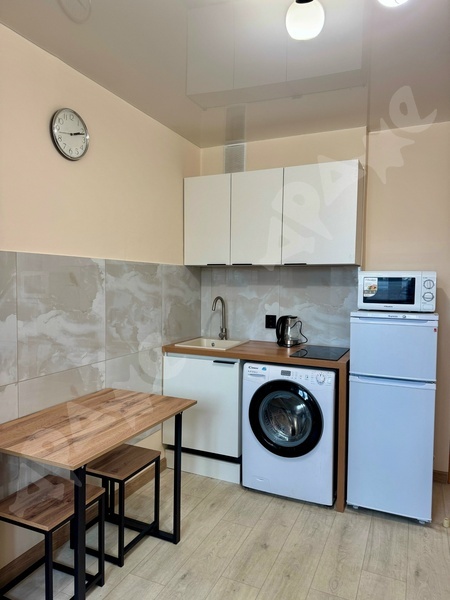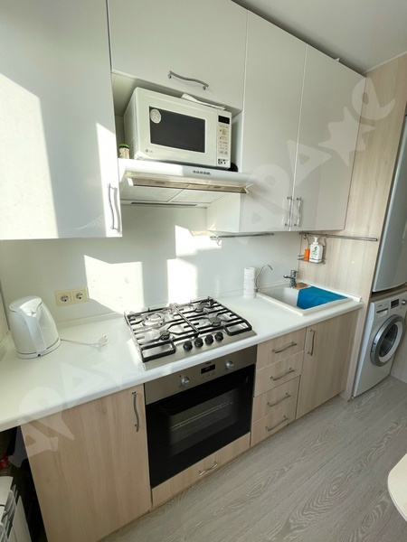 В квартире есть все необходимое для жизни: кухня со встроенной техникой, индукционная варочная панель + новый набор посуды к ней, микроволновая печь, чайник, холодильник, новый диван на кухне (раскладывается в дополнительное спальное место), смарт-тв Samsung (42 дюйма), шкаф-купе 300х265х70, двуспальная кровать 180х200 с новым матрасом, стенка в прихожей, новая стиральная машина с сушкой.