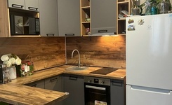 Здесь есть всё необходимое для комфортного проживания: новая мебель на кухне и в комнате, а также бытовая техника, включая холодильник, микроволновая печь, плита, духовка, вытяжка, стиральная машина. В совмещённом санузле установлена душевая кабина. Подключён интернет, поэтому можно работать и отдыхать без перебоев.
