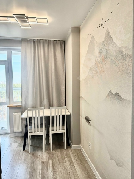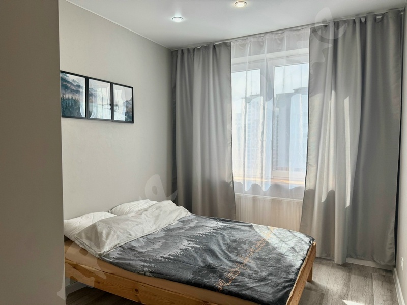 Квартира площадью 44 м2, спальня 15 м2, кухня-гостиная 22 м2, санузел 4 м2. Этаж 19. В квартире ремонт не от застройщика.