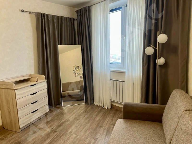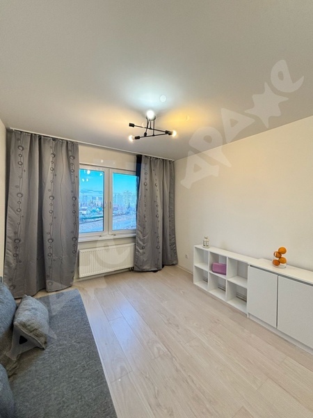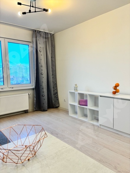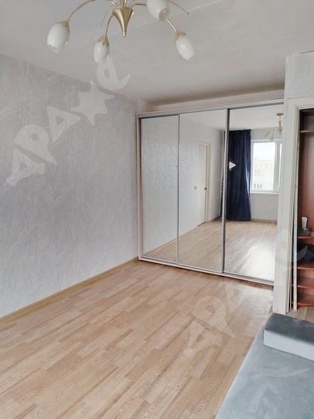 В квартире есть теплая лоджия. Комнату легко зонировать, например, поставив стеллаж. Две двери: в кухне, в ванной. Аренда от 6-ти месяцев. Этаж 14-ый, всегда красивый вид из окна.