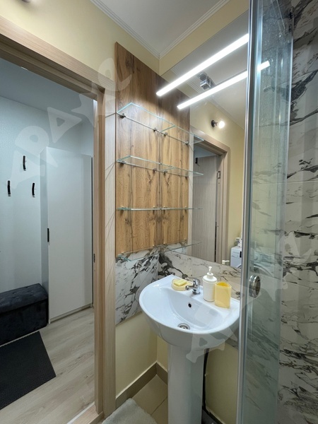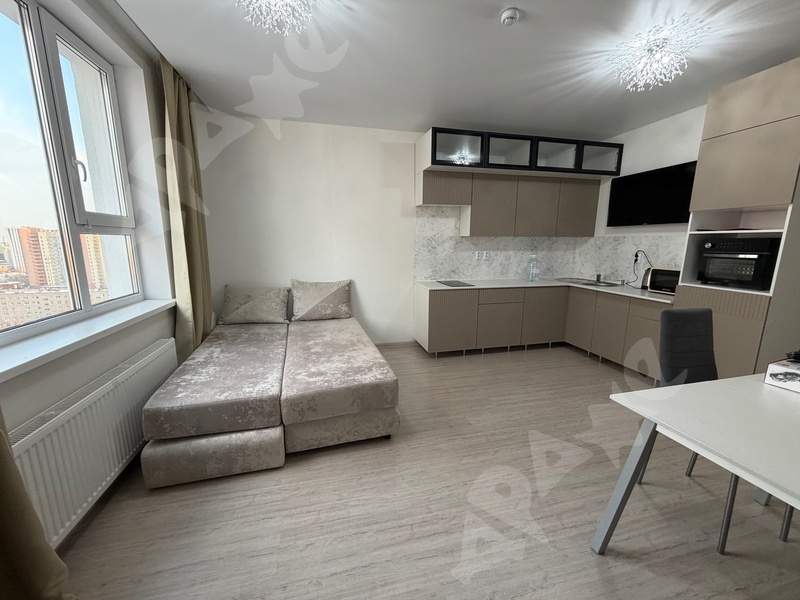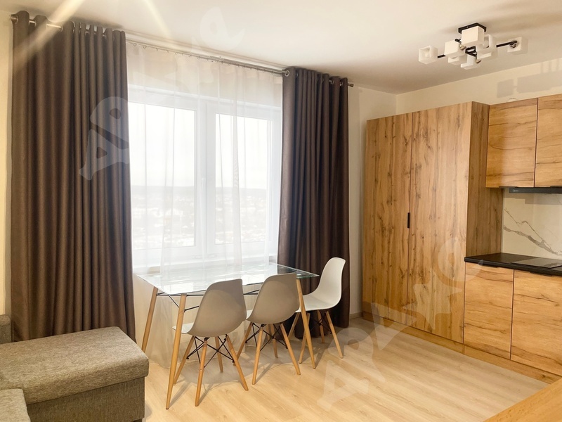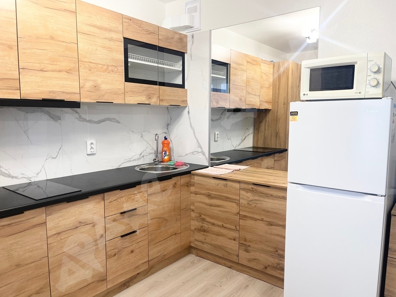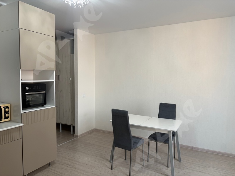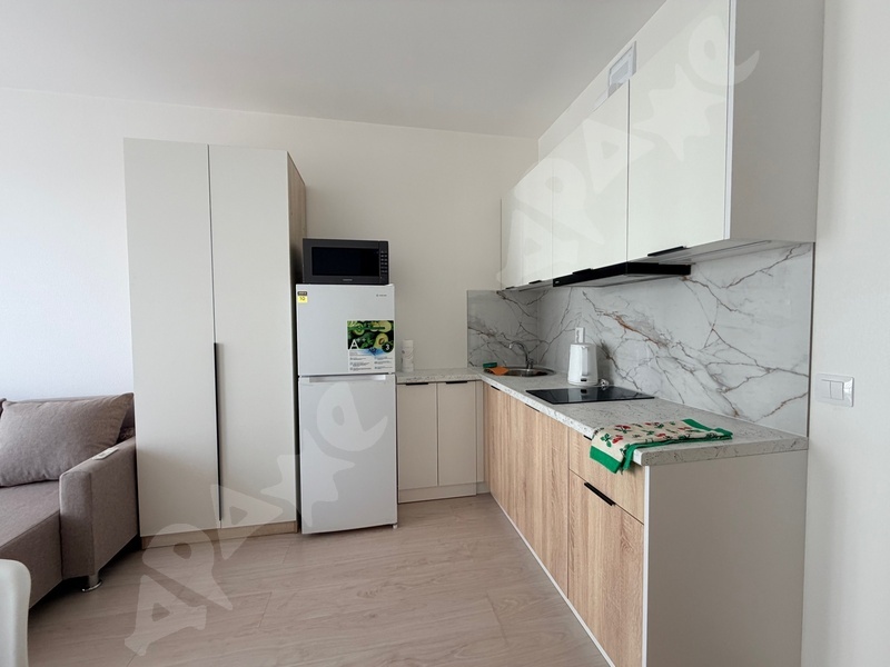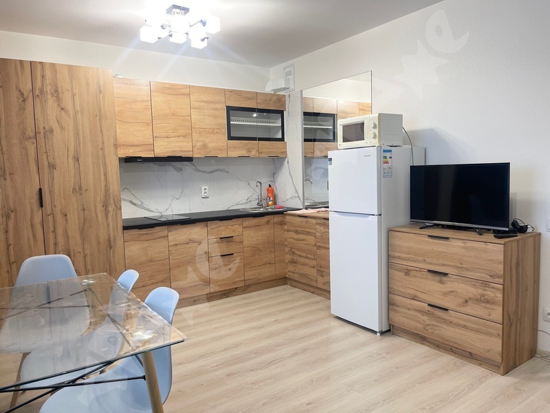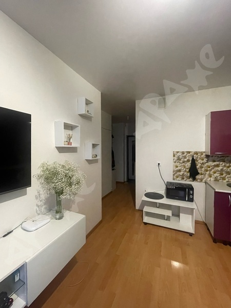 площадь квартиры 21,4кв м. Этаж 3/16, имеется балкон. Совмещенный санузел, ремонт - евро, как на фото. Студия полностью обустроена новой мебелью и техникой и готова к проживанию. Wi-fi подключен. В санузле полноценная душевая по индивидуальному проекту с тропическим душем.