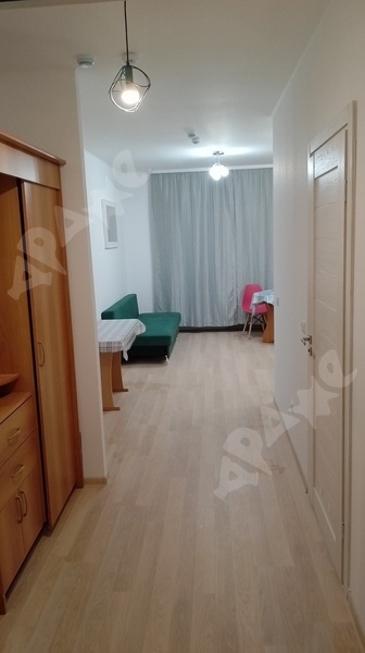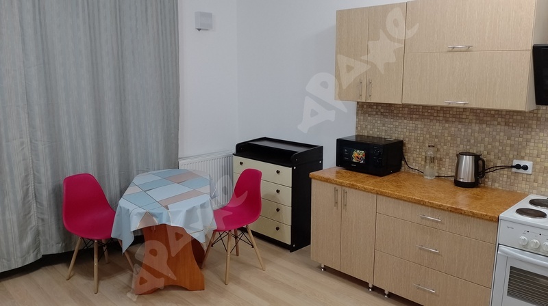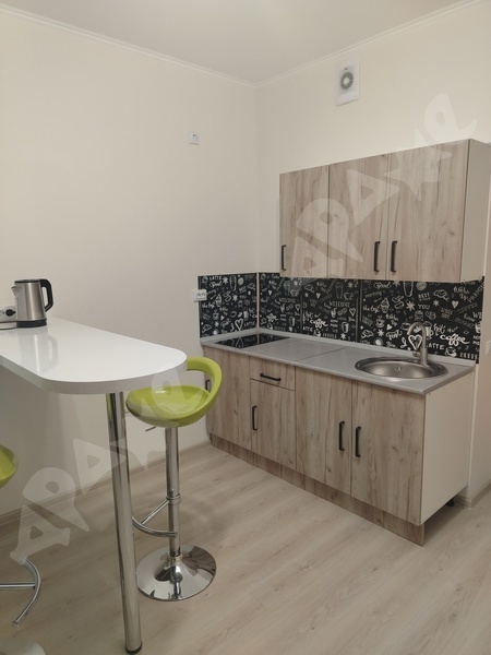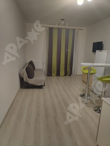 Площадь квартиры 25.3, лоджия, этаж 2/16, сан. узел совмещенный. Евро ремонт: натяжные потолки, пластиковые окна, ламинат. В доме видеонаблюдение, охрана, детская площадка, датчики пожарной сигнализации в квартире. Студия полностью готова к проживанию: холодильник, стиральная машина, микроволновая печь, плита электрическая, чайник, телевизор, места для хранения, раскладной диван. Водоснабжение и отопление по счётчикам, показания отправляются автоматически. Рядом магазины, дет. сады, школы, парикмахерская, пункты выдачи. Без животных.