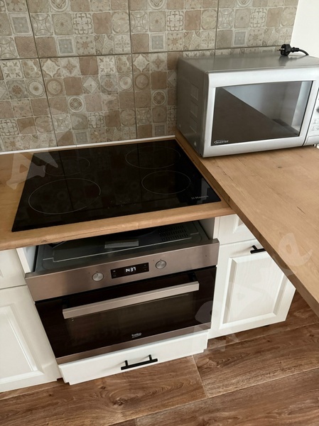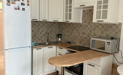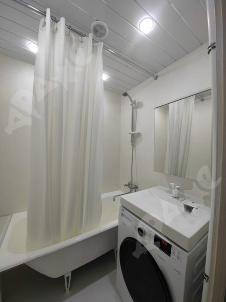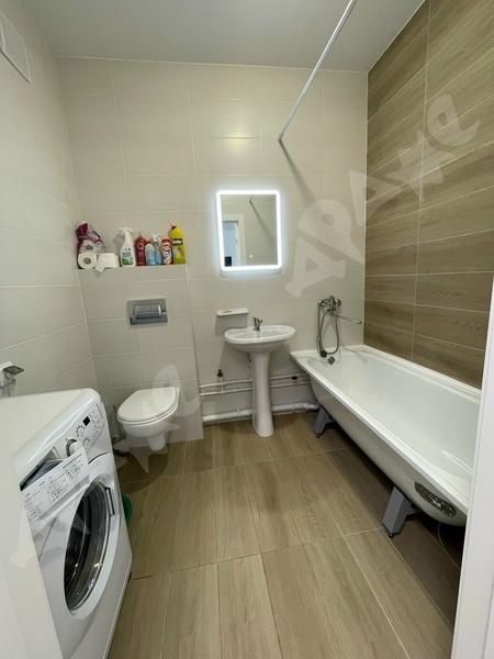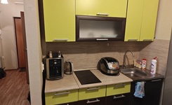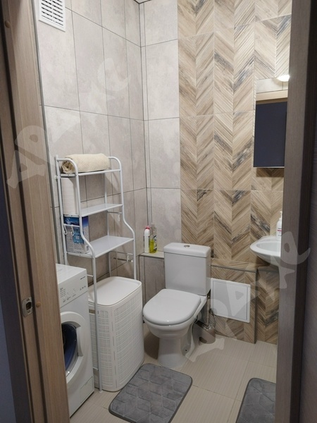 В квартире сделан качественный ремонт, санузел в плитке, кухонный гарнитур с раковиной и варочной поверхность, холодильник, стиральная машина, пенал в ванной.