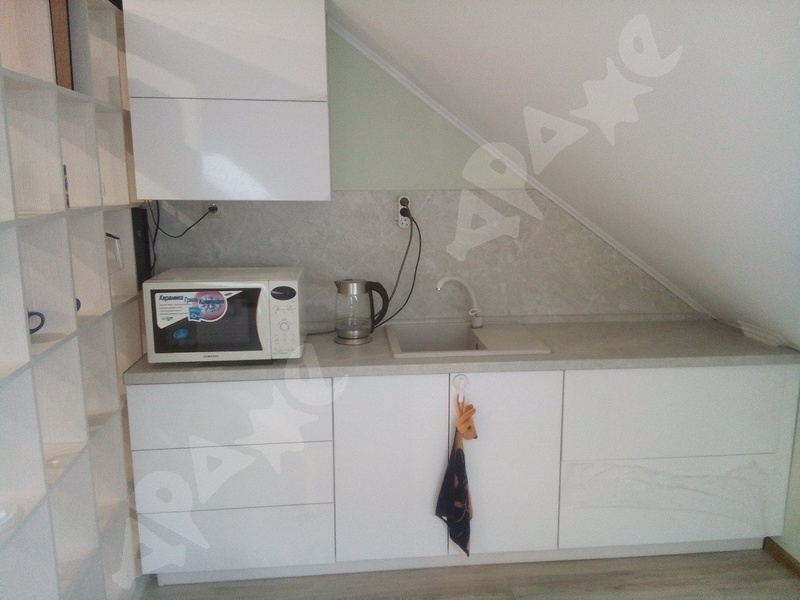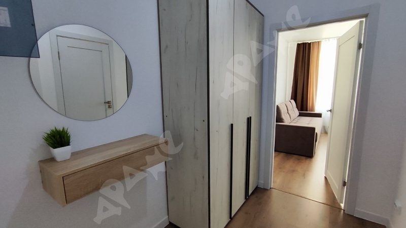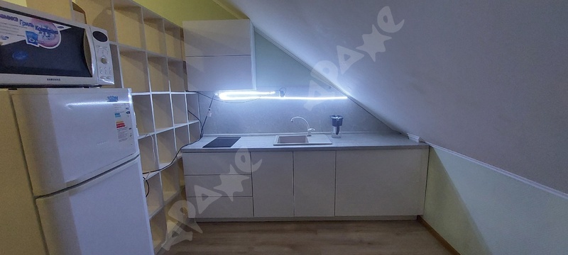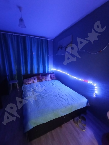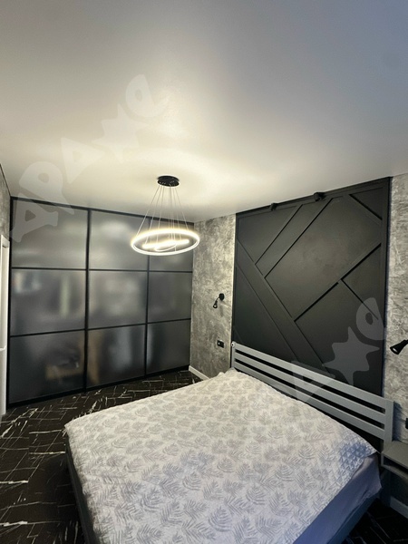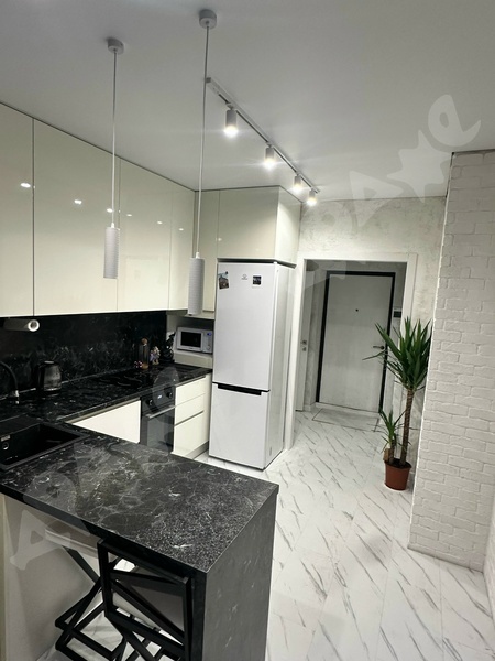 Кухня-гостиная : Инверторный кондиционер , управление через телефон (бесшумный), кухонный гарнитур, барная стойка , варочная поверхность, микроволновая печь, вытяжка, капсульная кофемашина, чайник, холодильник, стулья, диван. Установлен раздельный свет (управление с пульта , отдельная подсветка барной стойки). Спальня: просторная кровать, встроенный шкаф-купе, скрытые сушилки для одежды