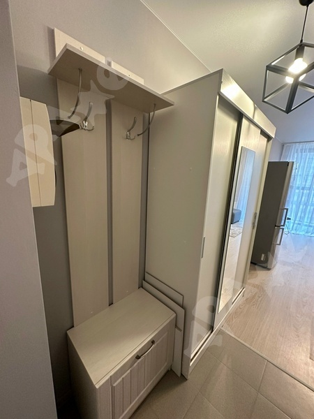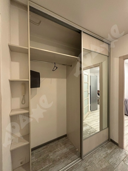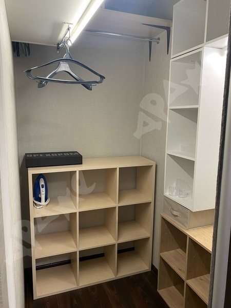 Укомплектованная кухня, большой шкаф-купе в прихожей, платяной шкаф на лоджии для дополнительного хранения.