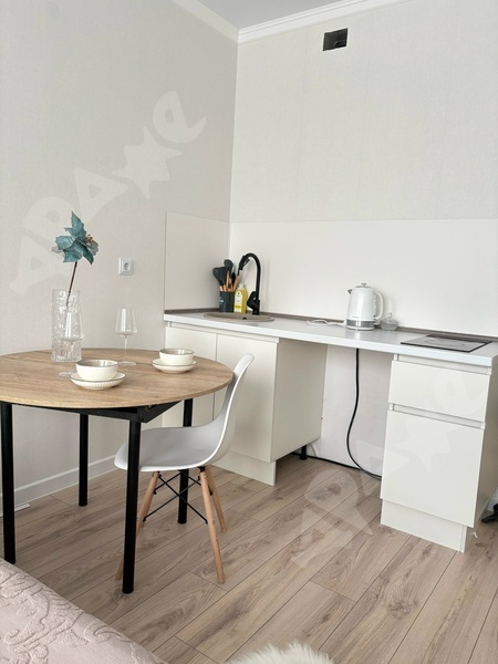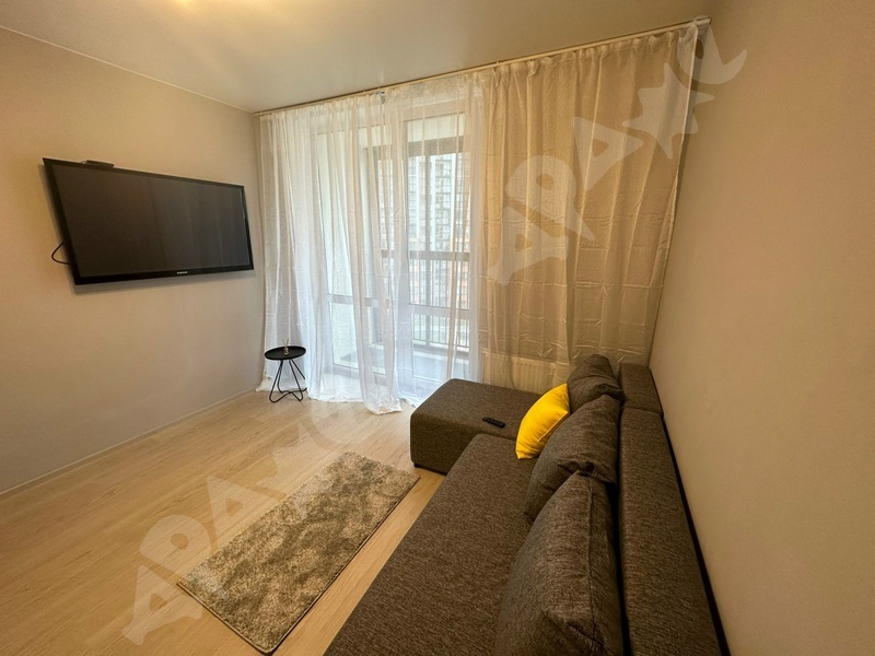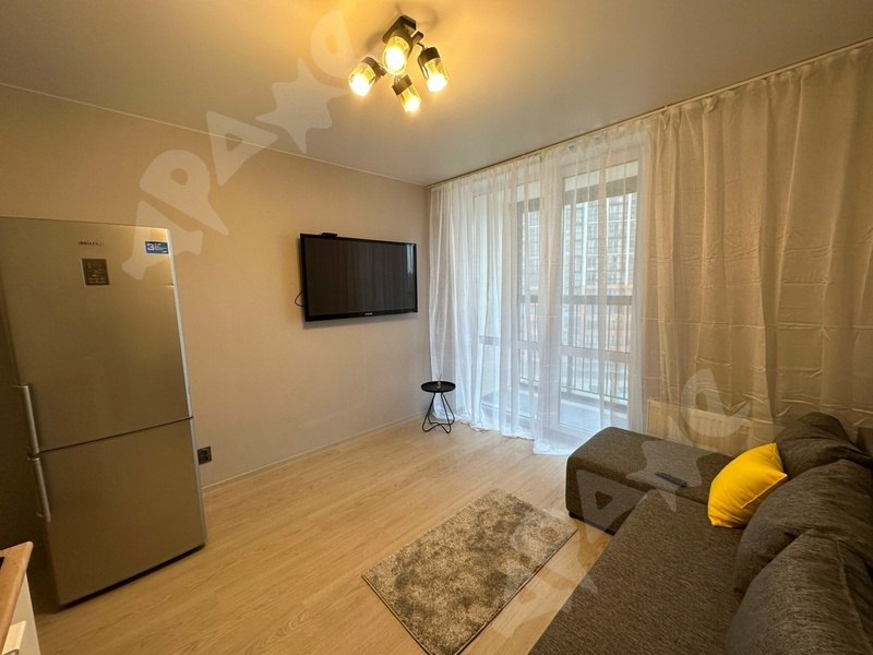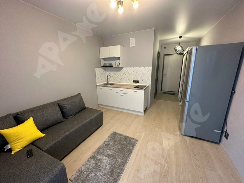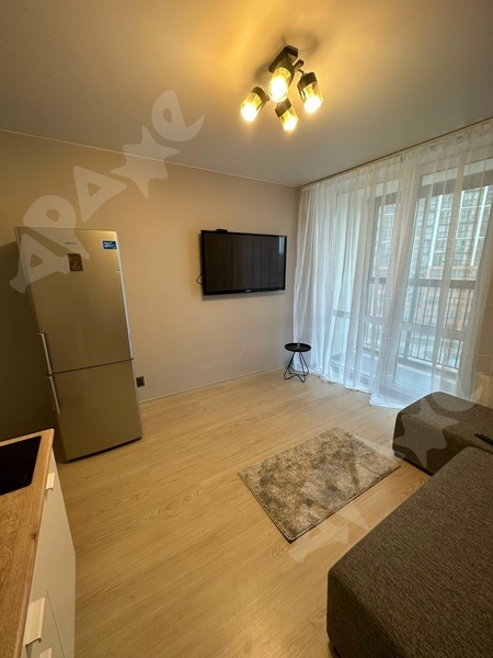 Студия, 23 этаж, площадь квартиры 30 кв.м. постройка дома 2018 год. В квартире есть все необходимое: варочная поверхность, эл.чайник, микроволновка, кухонный гарнитур, обеденный стол и новые стулья Икеа, холодильник, стиральная машина, шкаф-купе, диван. Из больших окон открывается шикарный вид на пруд и лес.