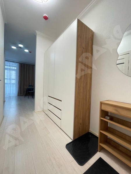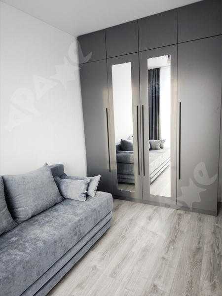 Также в квартире расположена просторная двуспальная кровать с ортопедическим матрасом (под кроватью есть место для хранения вещей), туалетный столик, раскладной диван, несколько шкафов. Имеется застреленный балкон.