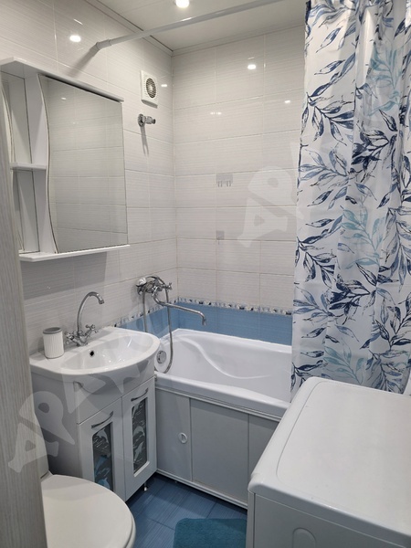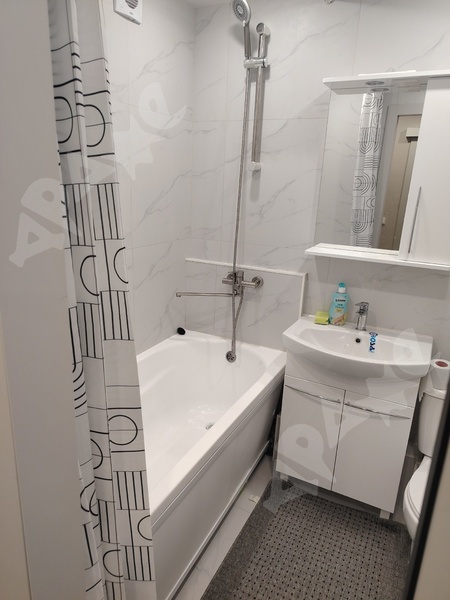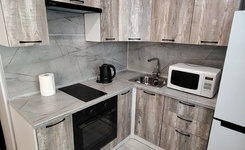 В квартире есть всё необходимое для комфортного проживания: удобная мебель на кухне и в комнате, а также вся необходимая техника — холодильник и стиральная машина. Санузел совмещённый, установлен современный душ.