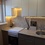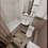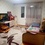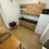 Из мебели: большая кровать, кухонный гарнитур, два стула, стол, гладильная доска.