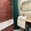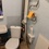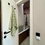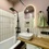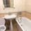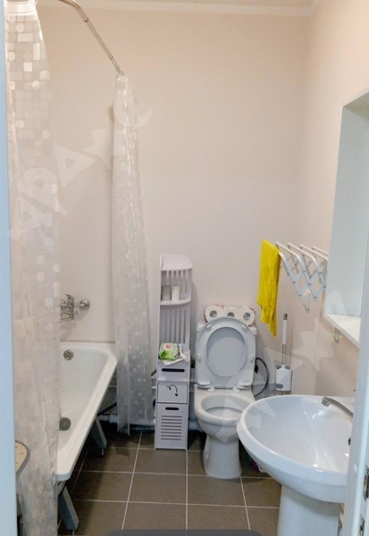Ванная комната: ванна, туалет, стеллаж, зеркало с хранением, корзина для вещей