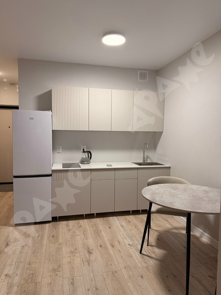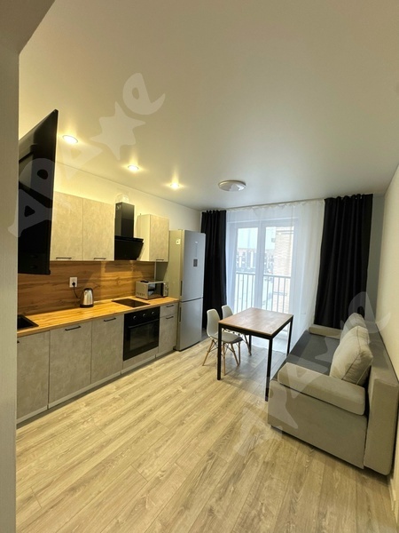 Площадь квартиры 37,5 кв. м., кухня 12 кв. м., этаж 21/26. В квартире необходимая мебель и техника: кух. гарнитур, холодильник, диван, шкаф, стиральная машина. Всё как на фото. Дом новый, рядом с домом вся необходимая инфраструктура (магазины, пункты выдачи, детские площадки).