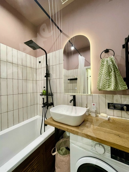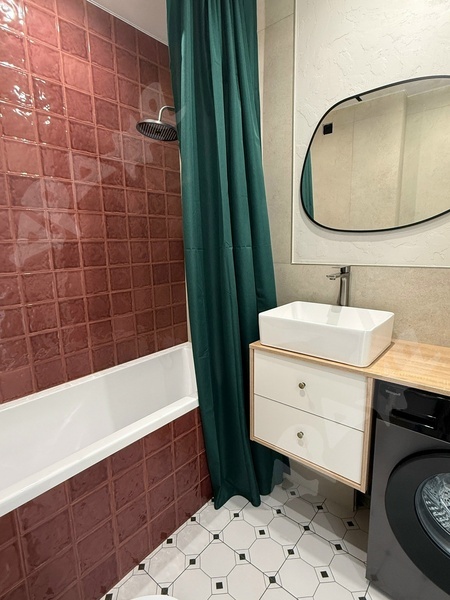 Ванная комната в плитке, полноценная ванна с автосливом.