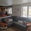 В комнате: диван, шкаф-купе, стол, книжные полки