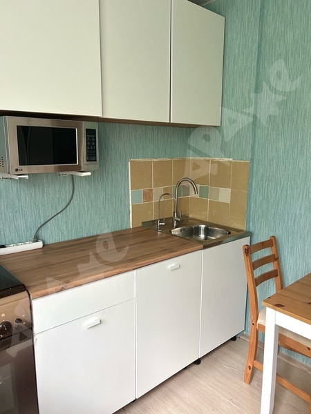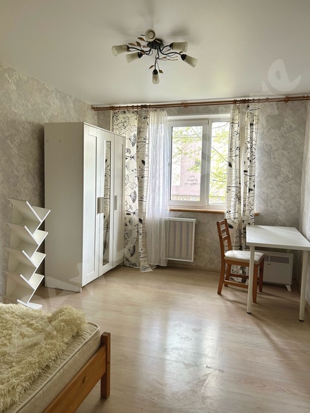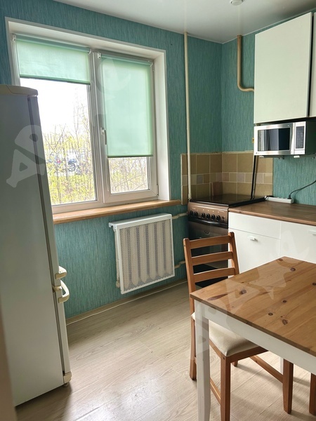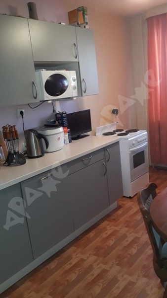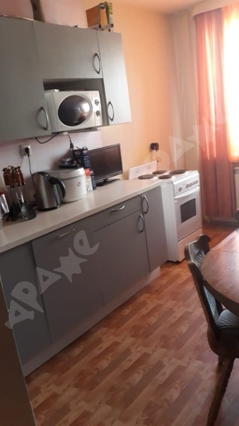 Площадь квартиры 38 кв. м., этаж 11/16. Из мебели кухонный гарнитур, холодильник, эл. плита (с духовкой), стиральная машина, обеденный стол со стульями, в комнате шкаф. Квартира сдается на длительный срок. В шаговой доступности остановки общественного транспорта и магазины. Территория дома огорожена, большая детская площадка.