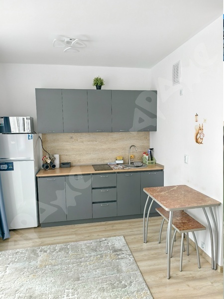 Показать полностьюСтудия в ЖК Квартал 12 комфорт класса с лоджией и гардеробной. В квартире есть все необходимое: диван, кухонный гарнитур, стол, стулья, телевизор, микроволновая печь, варочная поверхность, стиральная машина, холодильник. Ремонт: ламинат, обои, натяжной потолок, трекерное освещение. На первом этаже имеется колясочная, мягкая мебель для ожидания, а также 3 лифта. Во дворе большая детская площадка. Недалеко от дома находятся: Преображенский парк, школа и детский сад.