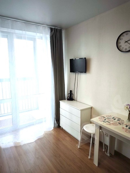 Квартира находится на 16 этаже, где огромная лоджия и окна в пол, красивый вид на аллею.