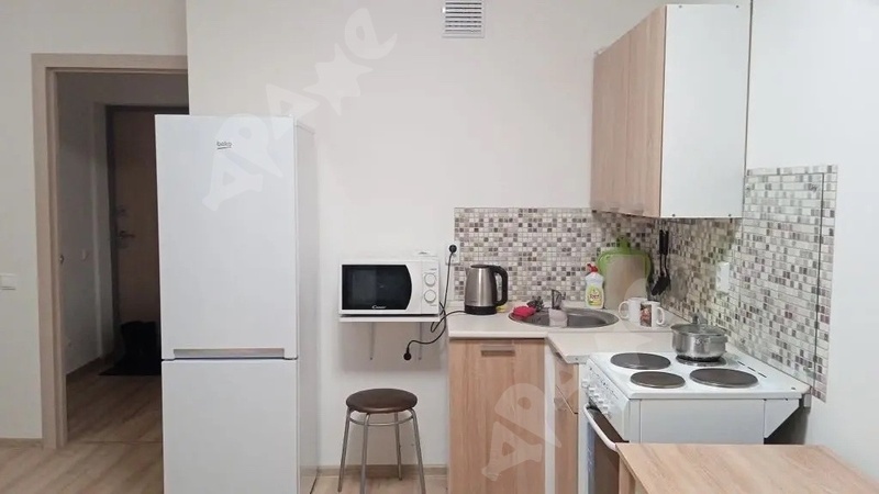 В комнате и на кухне есть необходимая мебель, индукционная варочная поверхность, свч . Из техники предоставлены холодильник и стиральная машина. В ванной комнате установлена душевая кабина с душевой системой. В квартире никто не жил, все новое.