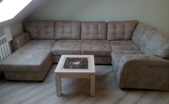 Есть новый диван, новая стиральная машина, новая кухонная мебель, стол, небольшой холодильник, плитка электрическая, сушилка для белья.
