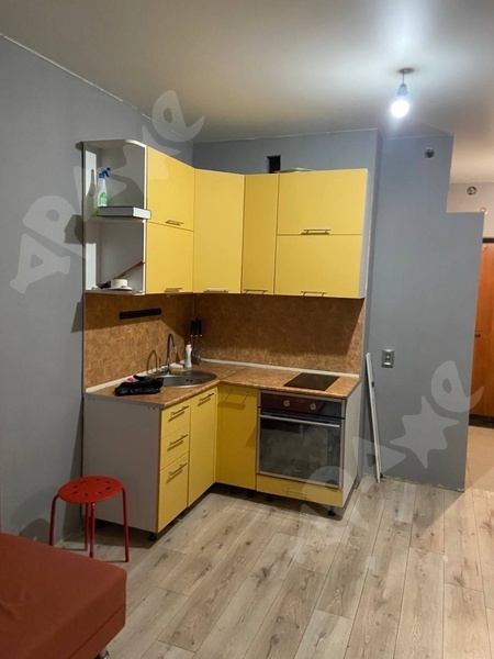Сдается: студия, 22 кв.м. Есть вся техника как на фото, духовка, варочная поверхность, кровать, шкаф, стиральная машина, холодильник, микроволновка, чайник, стол обеденный, стол письменный, два стула, телевизор с Яндекс ТВ, комод, новый матрас, сушилка. Все новое, ни разу не пользовались. Для одного проживающего, некурящего. В доме охраняемый закрытый двор, собственная газовая котельная на крыше, т.е. стабильная горячая вода, пятерочка, italian pizza, магнит через дорогу, остановка транспорта около дома.