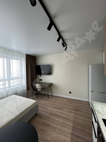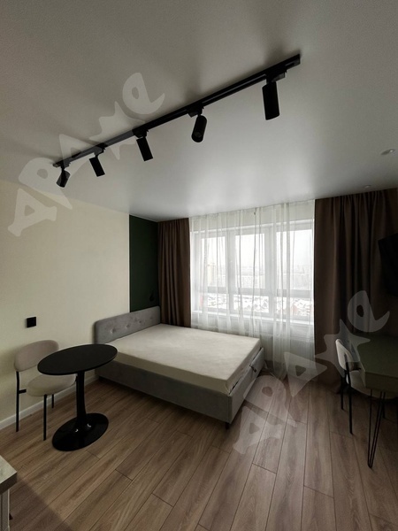Сдам просторную студию, с балконом, есть необходимая мебель и техника, срок от месяца, 11/25 этаж, автобусная остановка и трамвайная остановки, недалеко метро, депозит в размере ку за 1 мес, рассмотрим всех желающих, квартира готова к заселению.