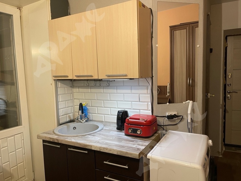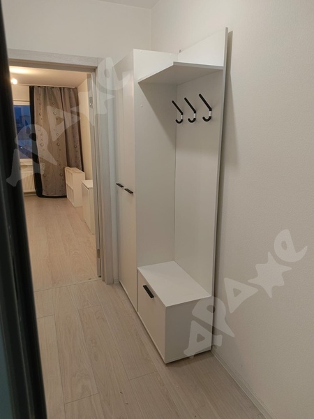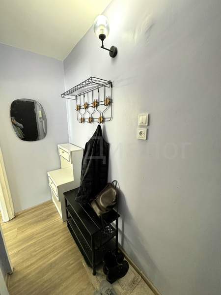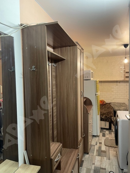 8 этаж, есть отдельная гардеробная. Диван, холодильник, микроволновка, стиральная машина, утюг, пылесос, телевизор, пилта.