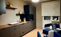 Просторная однокомнатная квартира.(42кв) Большая кухня-гостиная (20кв). Отдельная спальня, балкон, санузел совмещен.