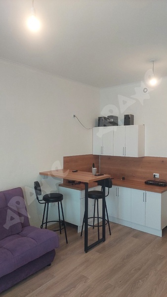 Площадь квартиры 28,9 кв.м,этаж 19/19,есть лоджия,сан.узел совмещёный,ремонт евро,потолки 3 метра,всё как на фото.Окна панорамные,кухонный гарнитур,музыкальный центр,стиральная машинка,холодильник,плита,чайник. Курить нельзя,с домашними животными нельзя.