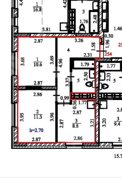 1 комната в трёхкомнатной квартире.