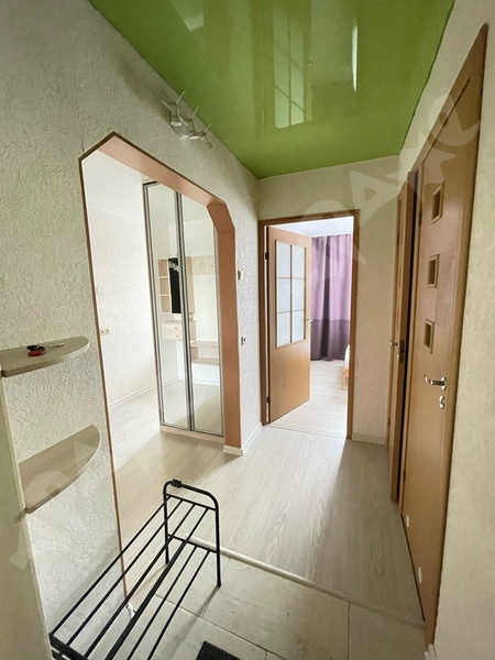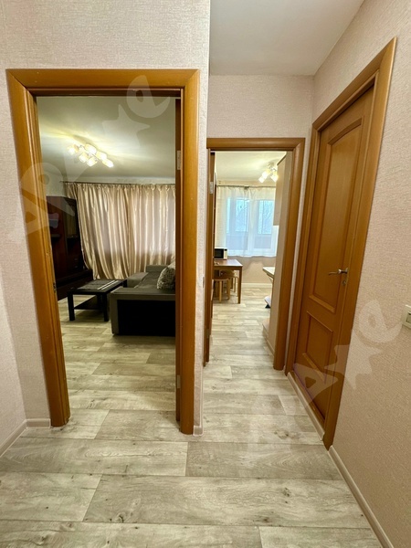 В квартире изолированные комнаты, что обеспечивает комфорт и приватность. Просторная кухня площадью 12 м² оснащена всей необходимой техникой, включая холодильник, посудомоечную машину и микроволновую печь. На кухне установлен удобный диван и обеденный стол. Из окон открывается вид на поле и лес. В спальне есть двуспальная кровать и вместительный шкаф-купе. Вторая комната -детская. Двойной шкаф, двойной стол и двухъярусная выдвижная кровать. Санузел совмещённый, оборудован ванной и стиральной машиной. В прихожей предусмотрена гардеробная. Дом расположен в районе с развитой инфраструктурой, рядом открытая парковка и спортивная площадка. Школа за домом. Курение запрещено, можно проживание с детьми, но без животных.