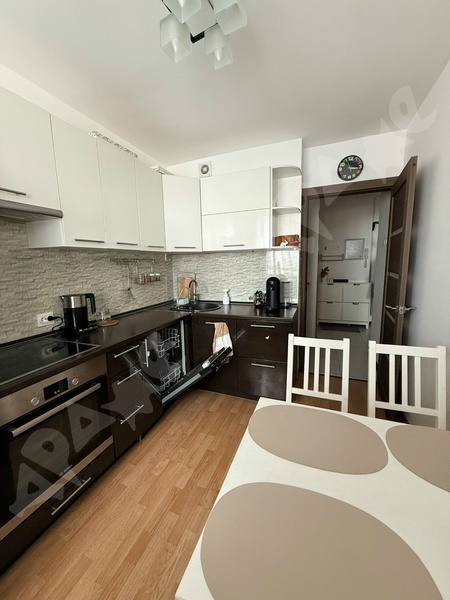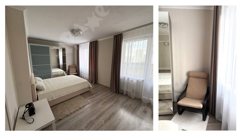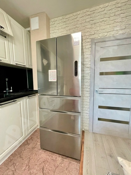 Квартира на 13-м этаже, в подъезде консьерж, санузел смежный, ремонт косметический как на фото, из мебели есть двуспальная кровать, диван, 2 больших шкафа, кухонный гарнитур. Стол, стулья, из техники - стиральная и посудомоечная машина, холодильник.
