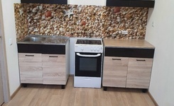 - Полноценная кухонная зона (плита, холодильник, чайник, посуда)