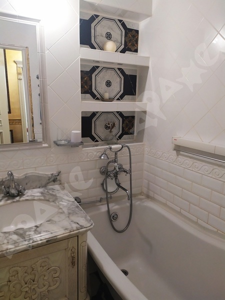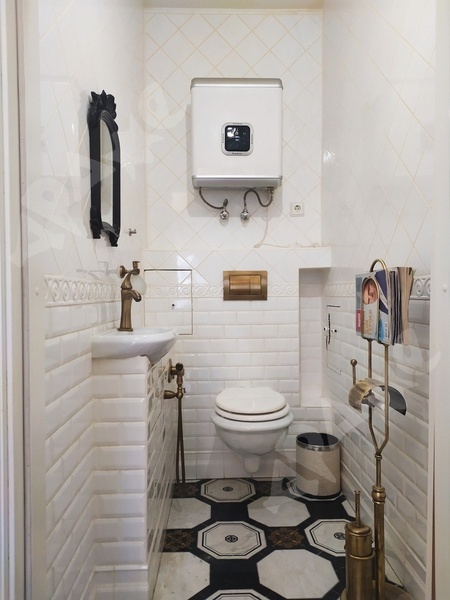 В ванной теплый пол и водонагреватель на случай отключения горячей воды (бывает один раз летом на 1-3 дня), стиральная машина с вертикальной загрузкой.