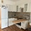 В квартире есть кухонный гарнитур, холодильник, стиральная машина, диван, стол, шкаф.