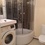 В комнате есть стиральная машина, холодильник,диван, шкаф, стол.