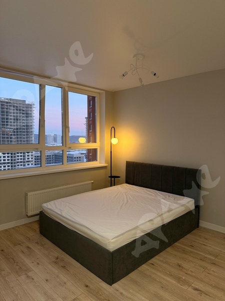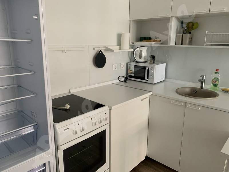 Светлая квартира на 16 этаже 25-этажного дома. В квартире есть кровать, шкаф, полностью оборудованная кухня (холодильник, варочная панель), стиральная машина. Санузел совмещенный, ванна.