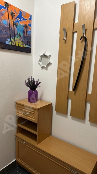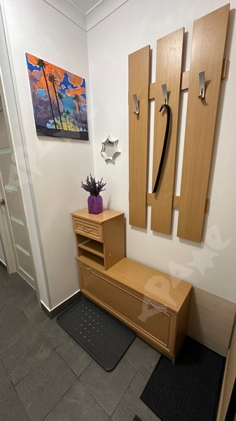 Дополнительно из мебели имеется диван, стенка в гостиной, кухня, стол, 4 стула, кровать (1,5-торная), комод, пенал в санузле,холодильник, индукционная плита, новые сушилка для белья и гладильная доска.